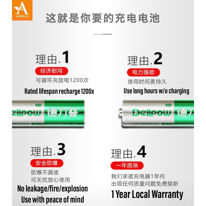 8. 1.2v NiMH charger can only charge 1.2v NiMH batteries. No other types of batteries and vice versa. However, Delipow cannot guarantee the quality, safety, compatibility, or performance of other battery brands. To ensure the best optimization, using Delipow set solely is recommended. We will not be responsible for any incompatible 3rd party brand charger/battery used.