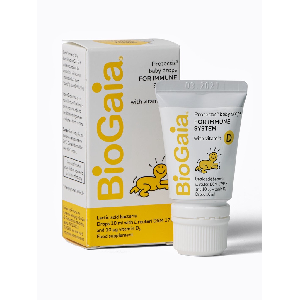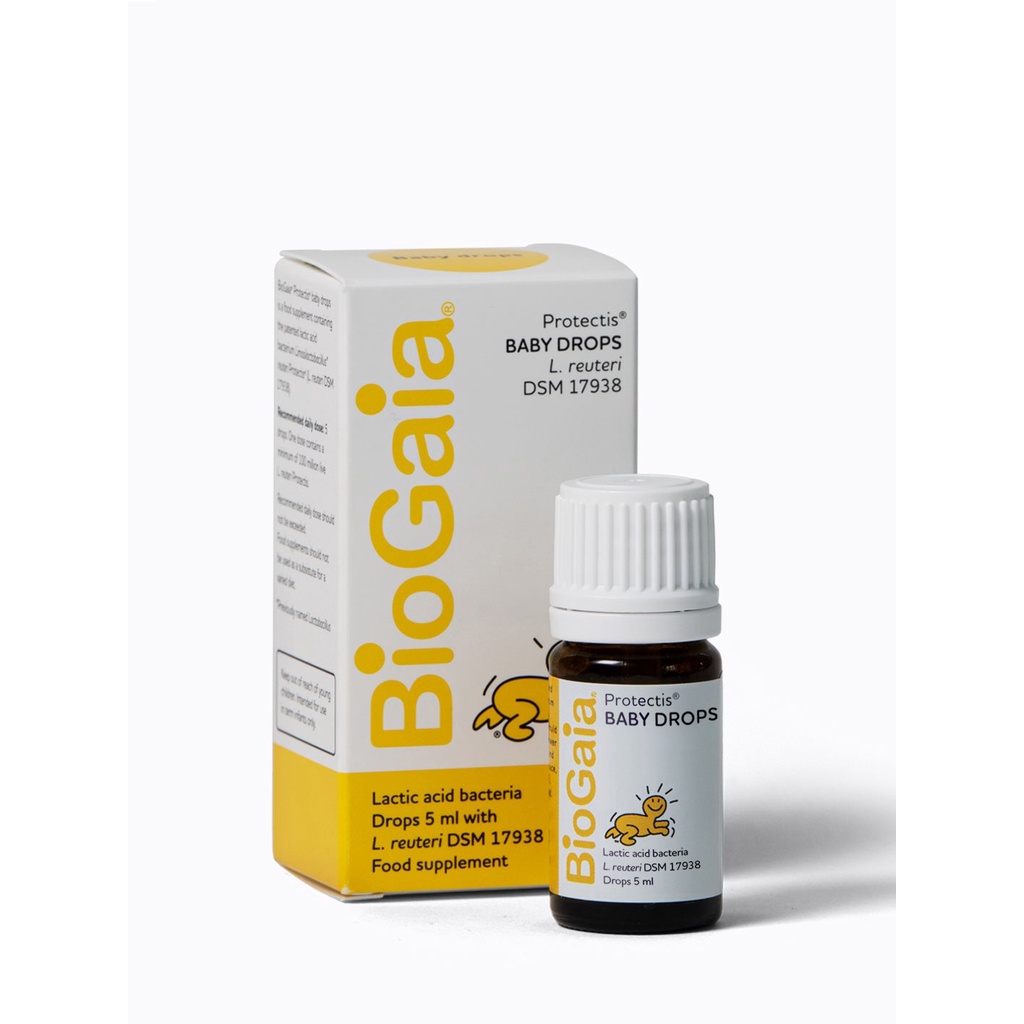BioGaia Protectis Baby Probiotics Drops is a food supplement for babies containing the patented lactic acid bacterium Lactobacillus reuteri Protectis (L. reuteri DSM 17938) that helps the good microorganisms restore a natural balance in the gut. Because L. reuteri Protectis naturally colonizes humans it has a strong adaptation to persist and interact with humans.