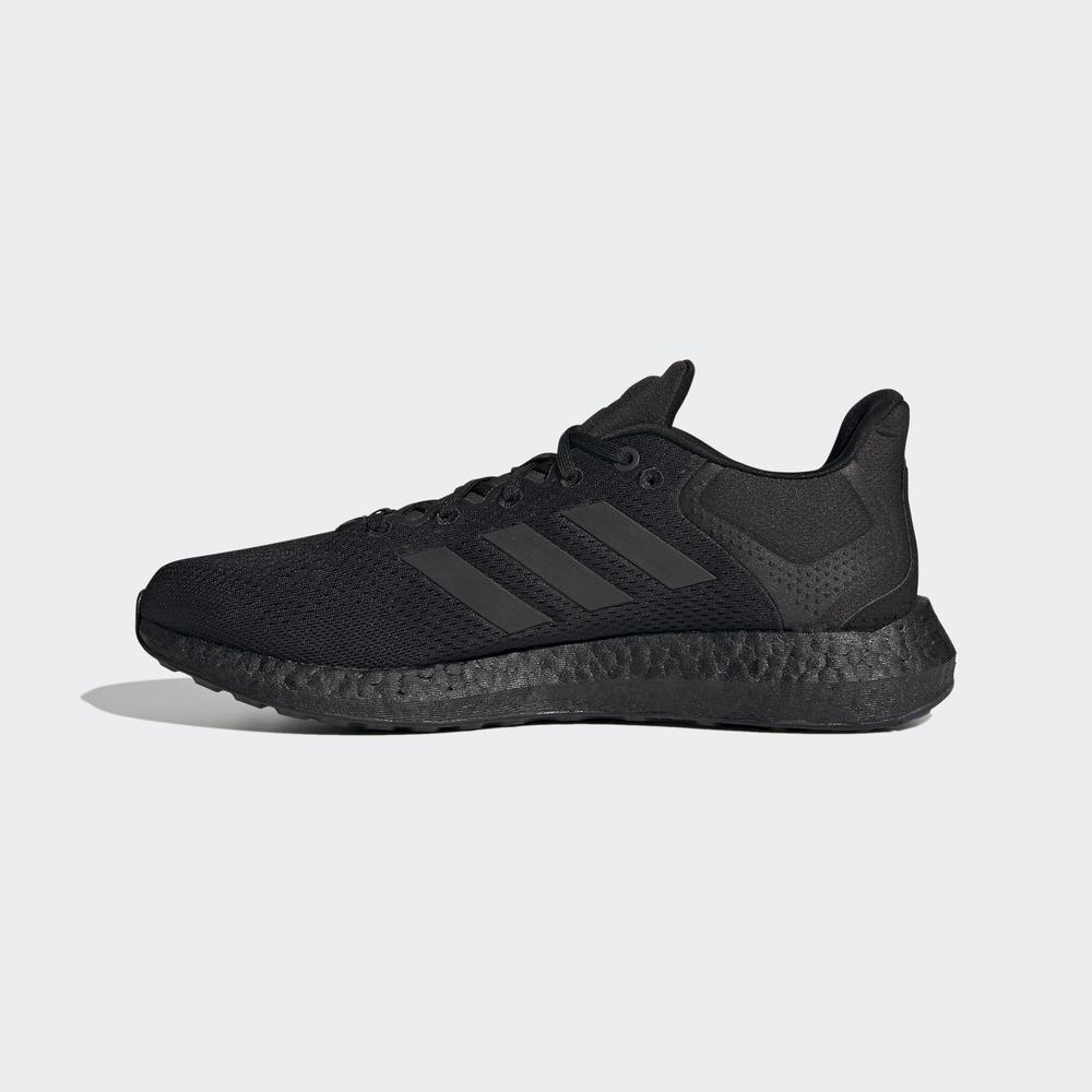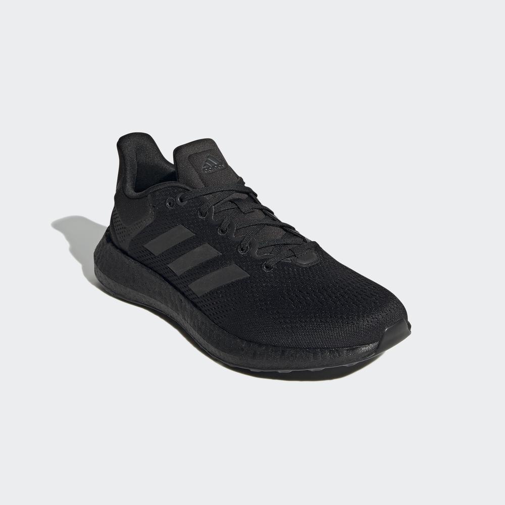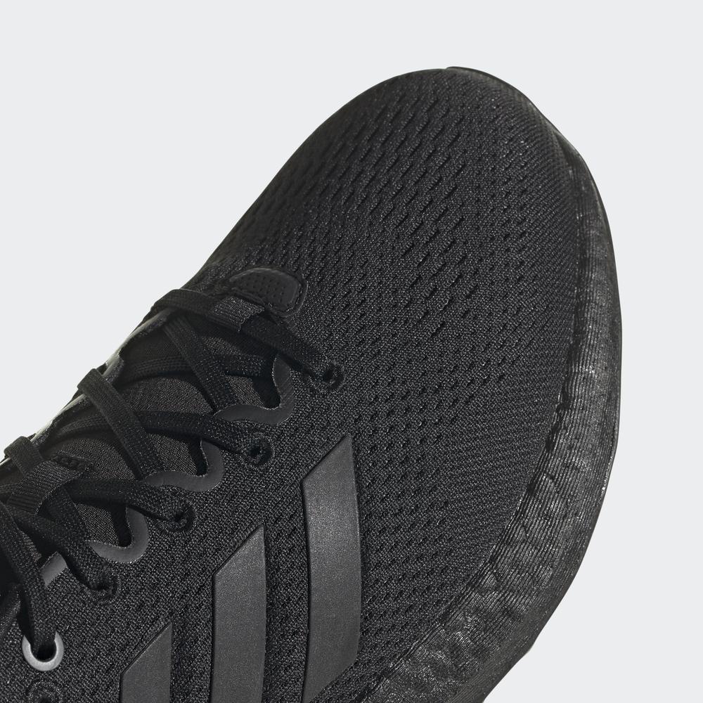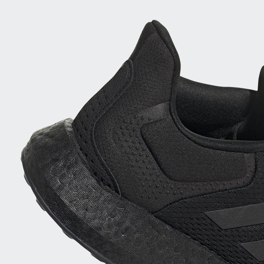 For quick morning miles and more. These adidas Pureboost performance running shoes are so simple, you'll want to wear them beyond your daily run. With responsive BOOST, the comfort is clear as soon as you slip them on. The soft knit upper comes with an external heel counter that locks your foot in place as you run down that last hill.