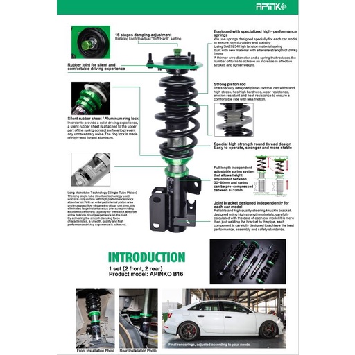 Cash and Carry Promotion Limited Time for Apinko Performance Street Series B16 Coilover Kit - $950 NETT