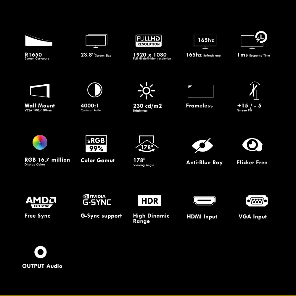 Armaggeddon Pixxel+ Xtreme XSC24HD Super Gaming Curve Monitor with 165hz Refresh Rate & 1ms Response Time
