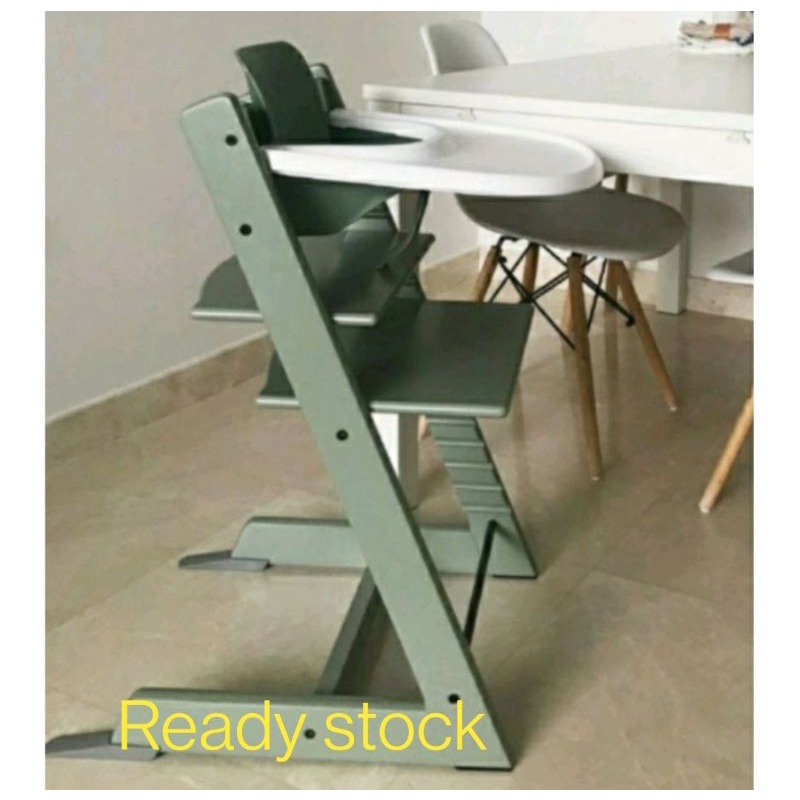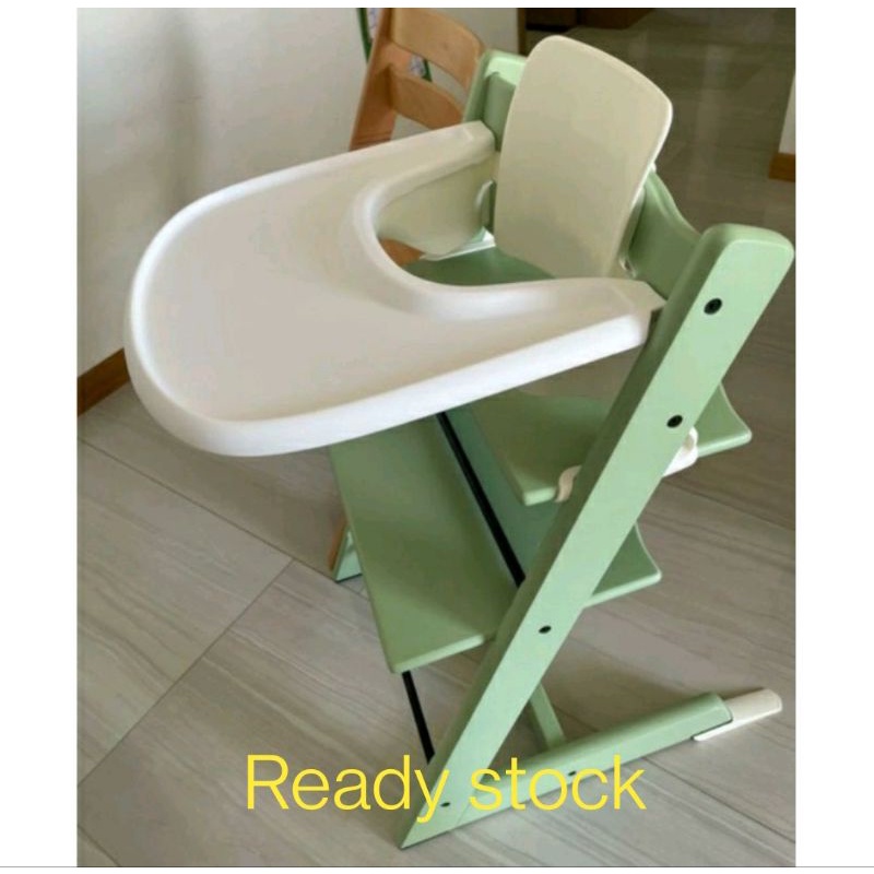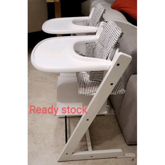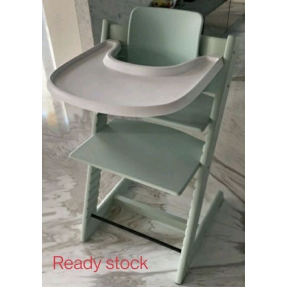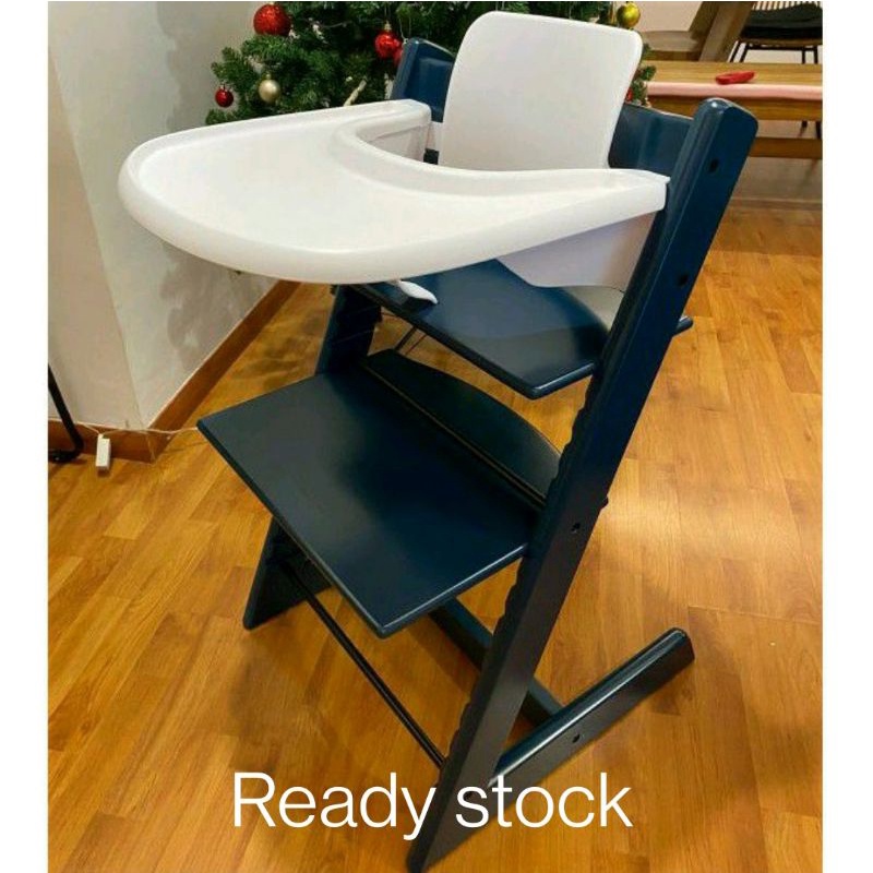 All chairs have matching baby set colors except midnight blue; baby set includes the back rest and front rail; tray is either white or grey