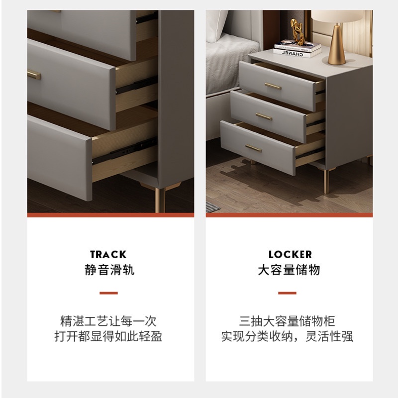 Bedside Table Home Leather Bedside Table Three-layer Drawer Bedside Cabinet
