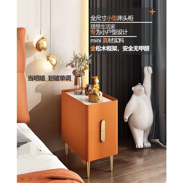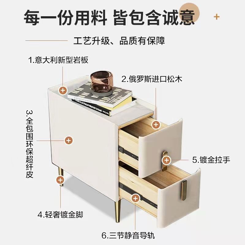 Bedside Table Light Luxury Ultra-narrow Storage Cabinet Solid Wood Slate Storage Cabinet