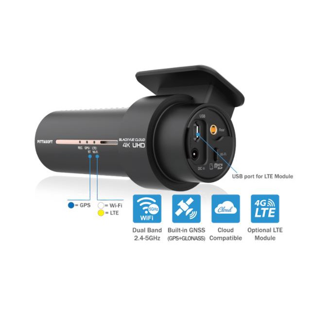 Highlights: 4K UHD (Front) + Full HD (Rear), HEVC (H.265), 2.4-5GHz Wi-Fi, Cloud, External LTE Module (Optional)