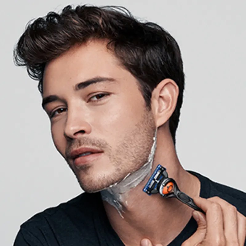 • Clean shave neck, cheeks and face with the Gillette Fusion5 ProGlide razor with Flexball Technology.