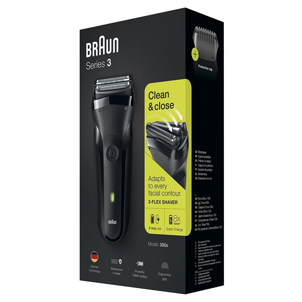 • Contents: Braun Series 3 electric razor, protective cap, smart plug for automatic 100-240 voltage adjustment