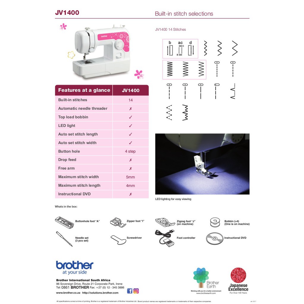 Brother JV1400 Sewing Machine is an affordable entry level sewing machine accompanied with multiple functions.