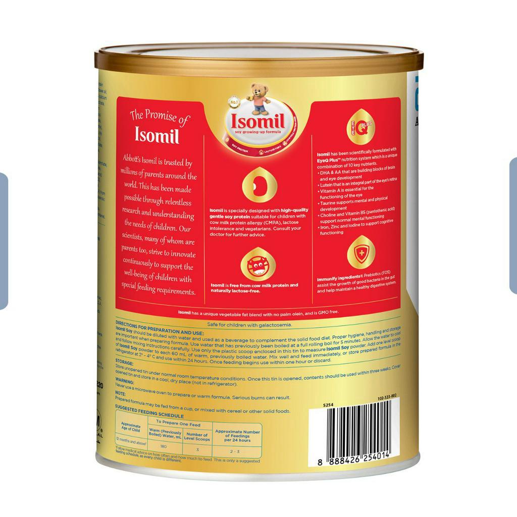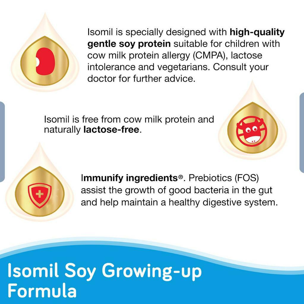 Isomil a growing up soy milk powder formula is designed for children with special feeding needs between 1 to 10 years suffering from lactose intolerance and cow milk protein sensitivity. It is also suitable for vegetarians.