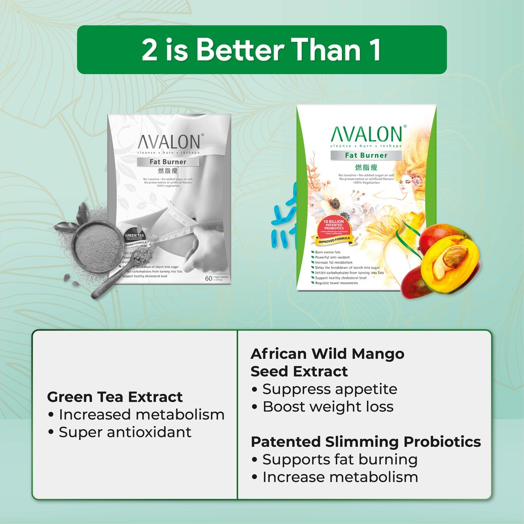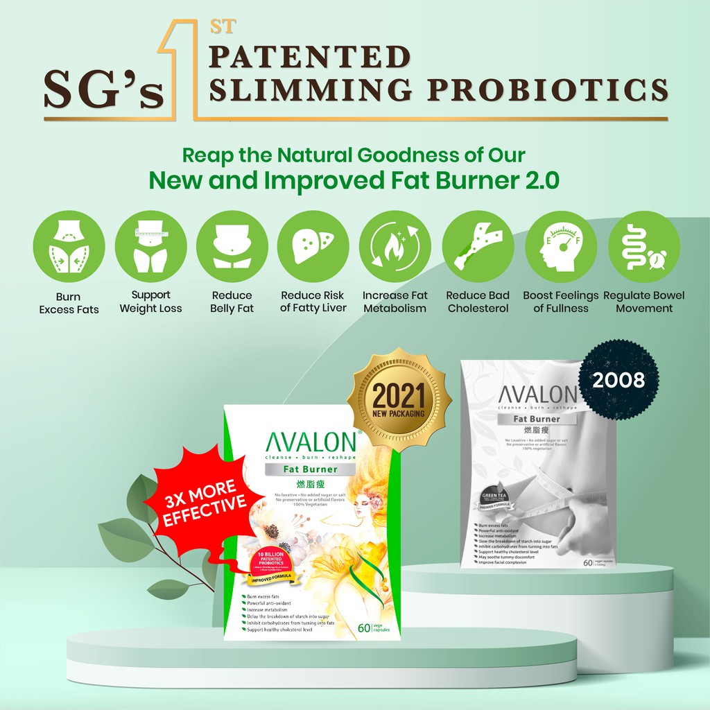 Get fit and toned with the new & improved AVALON Fat Burner 2.0. Newly formulated with 10 Billion Patented Slimming Probiotics and African Wild Mango Seed Extract, AVALON Fat Burner 2.0 is clinically proven to help reduce body weight & belly fat. AVALON Fat Burner 2.0 is 100% natural & safe, and does not induce common side effects such as diarrhoea, excessive water loss, heart palpitations, weight bounce or fatigue.