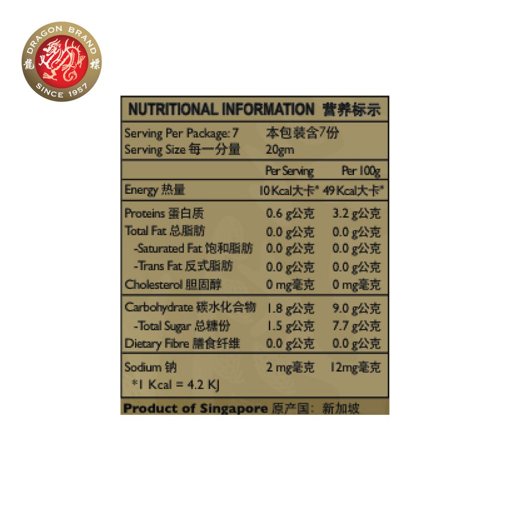 Dragon Brand Superior Jin Si Yan Concentrated Bird's Nest is prepared from meticulously selected superior quality Jin Si Yan Bird's Nest. The product is then produced under stringent HACCP Food Safety Control system and coupled with advanced bottling technology. The product is sterilised entirely by heat with no preservatives, artificial colouring or flavouring added. It must be refrigerated and consumed within a week once the cap is opened. Ensuring that every bottle produced is of the highest quality is our commitment and promise to you.
