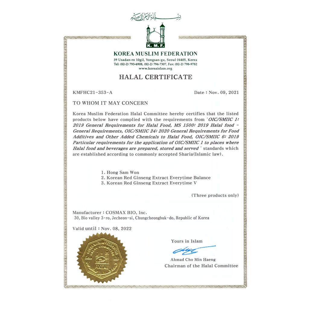 Cheong Kwan Jang has been certified as ‘The World’s No. 1 Ginseng Brand’ in the category of Ginseng Brand by Euromonitor International Ltd (Source: Euromonitor International Limited; Vitamins and Dietary Supplement category;