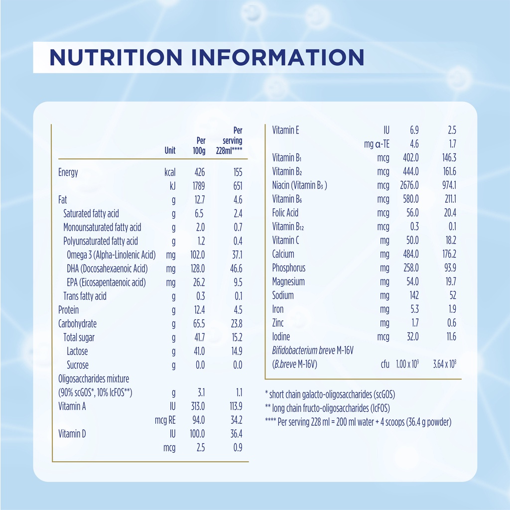 • Nutricia has over 120 years of expertise in early life nutrition and has been pioneering research over 40 years with our passionate team of more than 500 scientist and experts to understand how it supports your child’s development needs.