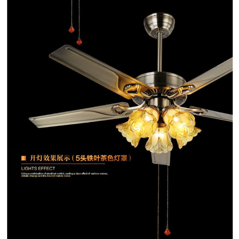 Ceiling Fan Iron Leaf Restaurant Retro Fan Light Mute Ceiling Fan Light Remote Control Ceiling Fan Light