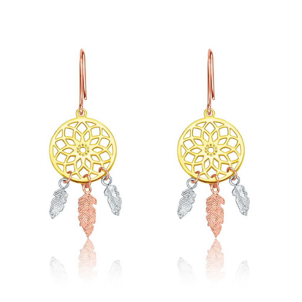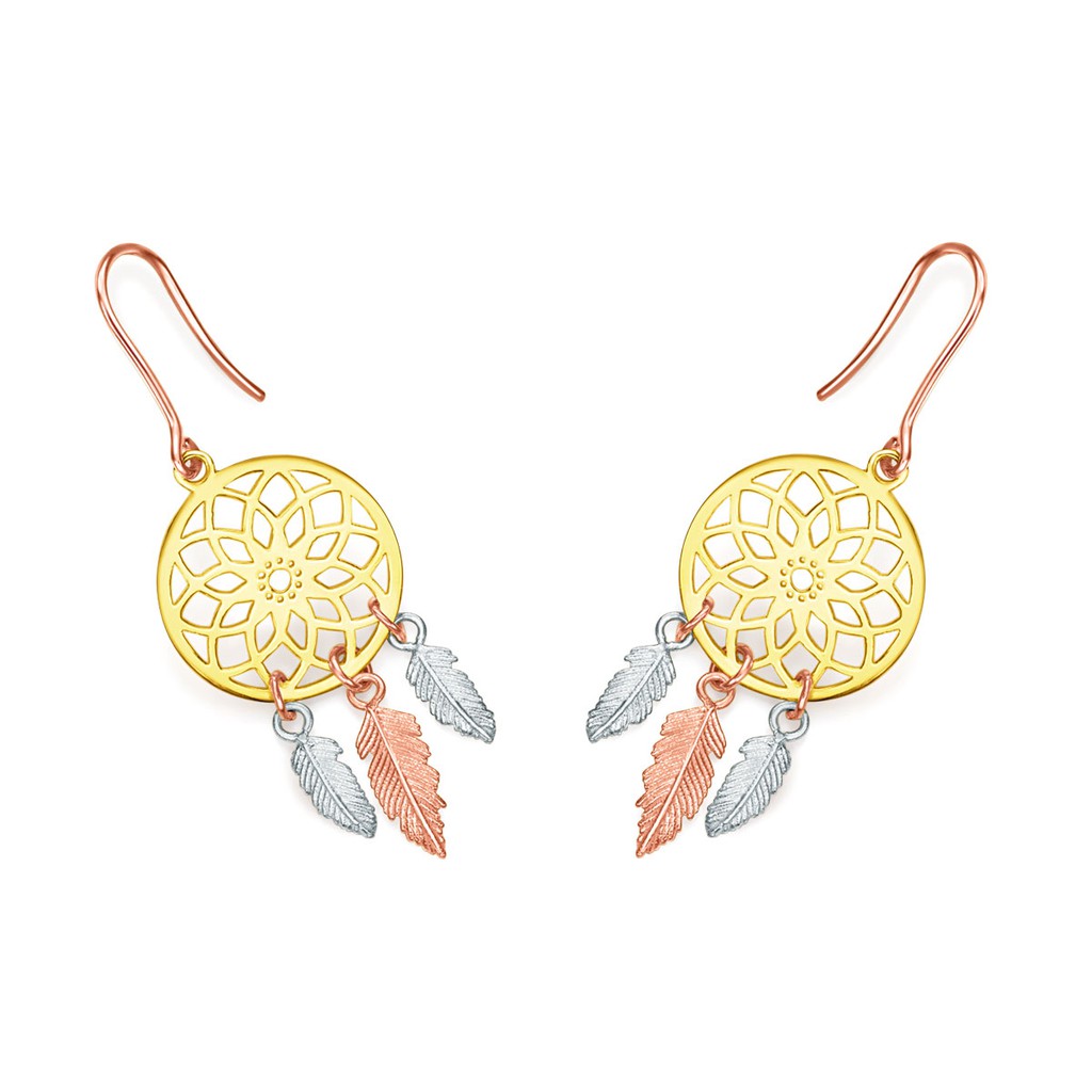 1 x CHOW TAI FOOK 18K 750 Rose White Yellow Gold Earrings - Dream Catcher E124125