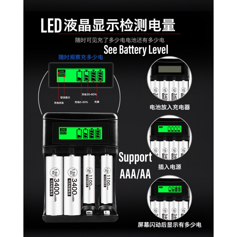 1. Don't charge other types of batteries such as 1.5V alkaline or carbon, otherwise, it will leak or cause an explosion.