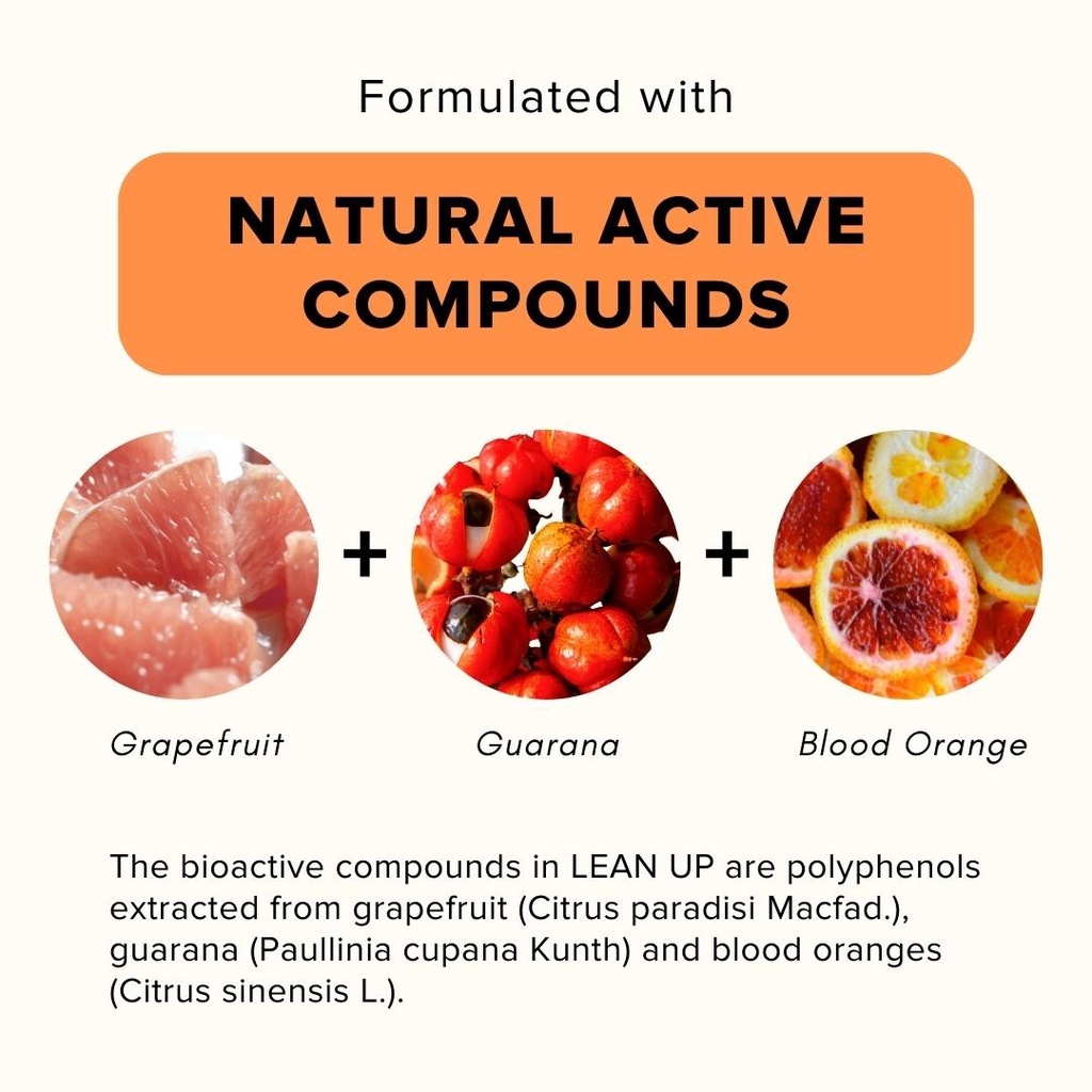 All active ingredients are natural extracts from ethically sourced Brazilian Guarana and Mediterranean Citrus. LEAN UP contains natural-occurring caffeine from Brazilian Guarana.