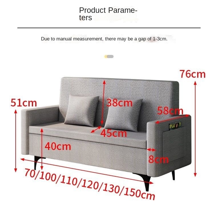 Double Three-person Sofa Chair Small Family Room Living Room Bedroom Fabric Storage Sofa