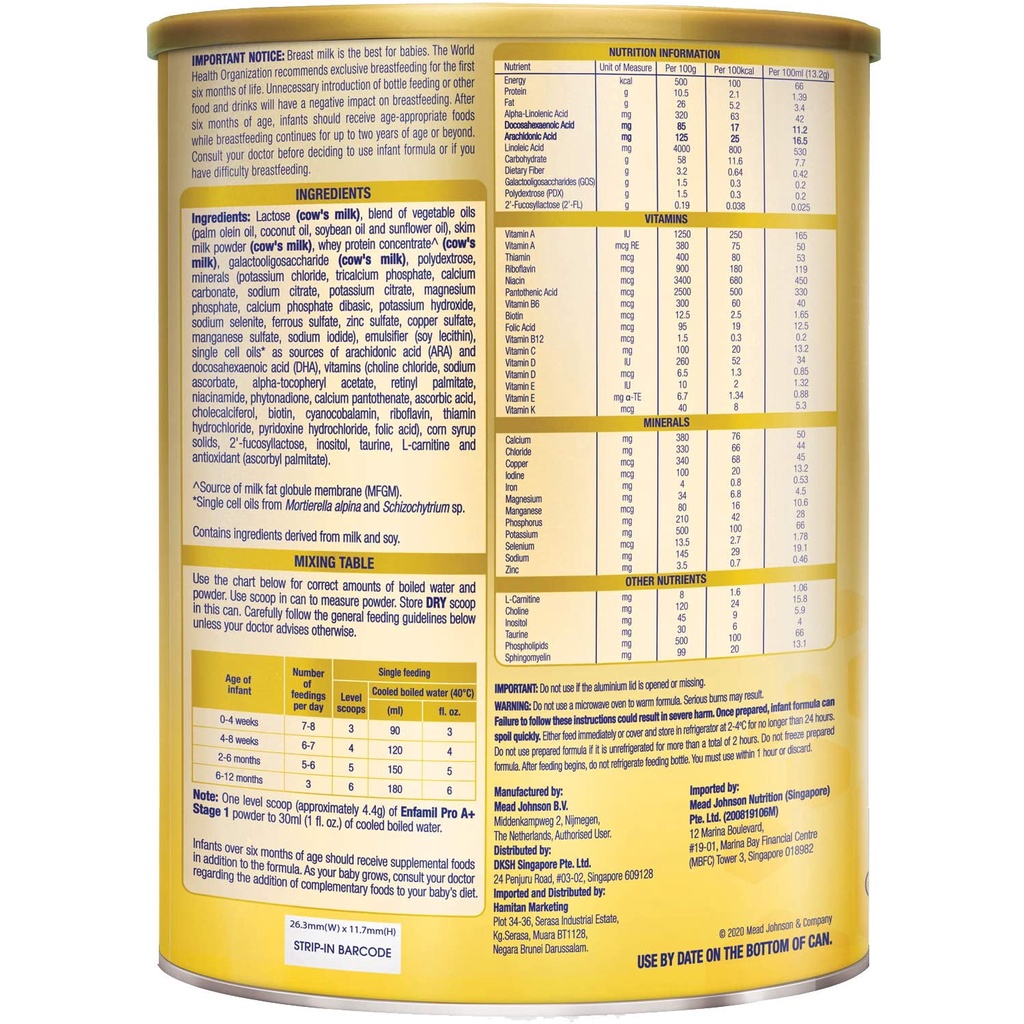 Enfamil Pro A+ Stage 1 Infant Milk Formula, 0-12 months, 1.8kg