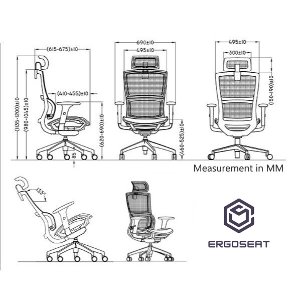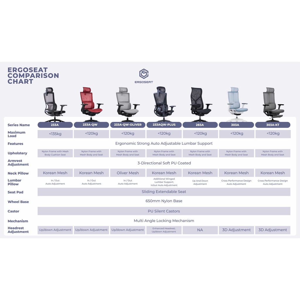 Ergoseat Ergonomic Office Chair Home Study Mesh Computer Chairs