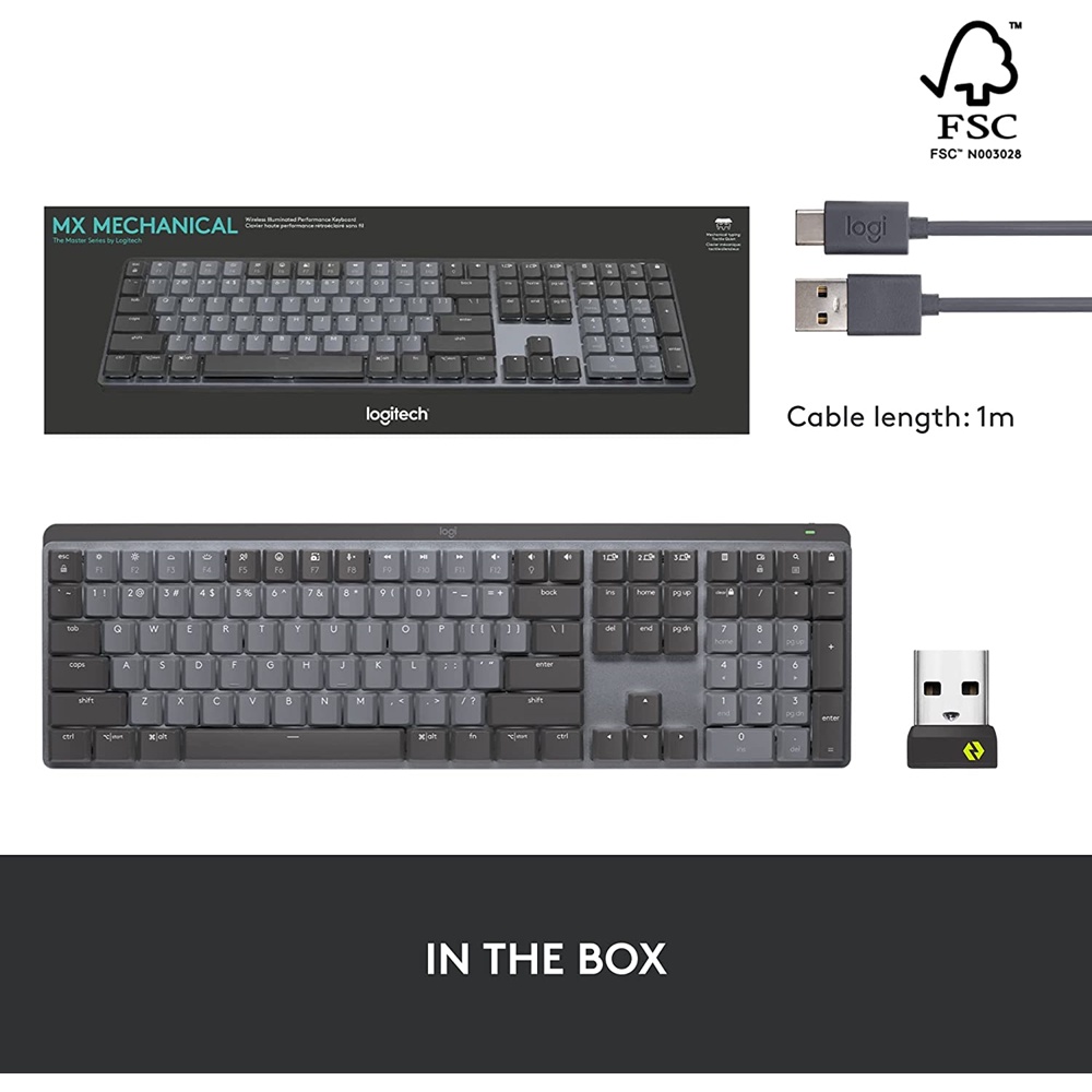 MX Mechanical keyboards stay powered up to 15 days on a full charge – or up to 10 months with backlighting turned off. Just one quick 15 minute charge using the included USB-C cable powers a full day of non-stop performance.