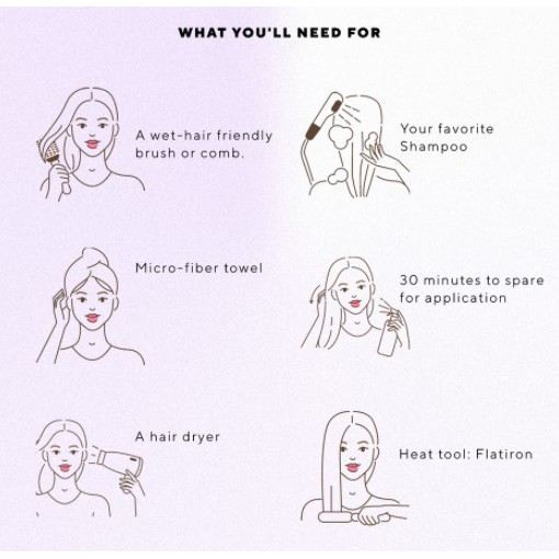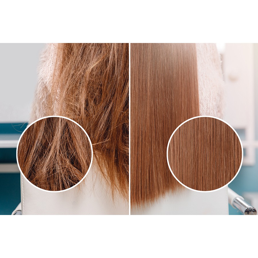 - After using this professional hair treatment product, style hair with a very lightweight blow dry using a brush that gives you some tension. This is what gives you the lovely sleek finish.