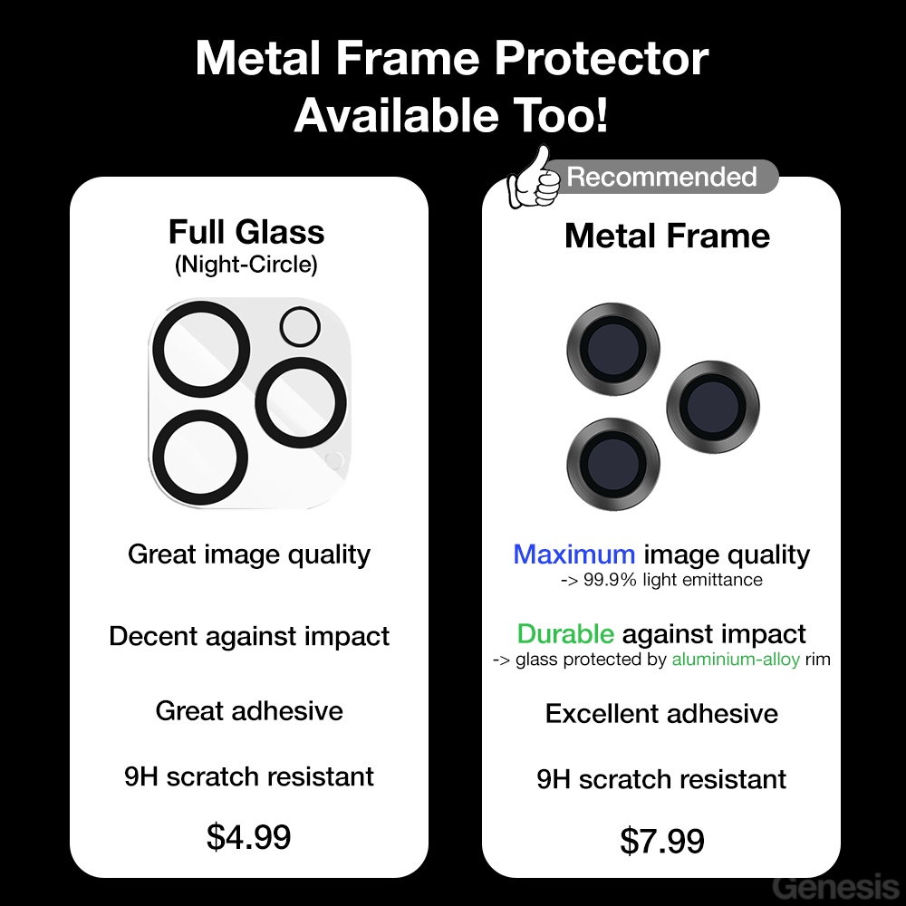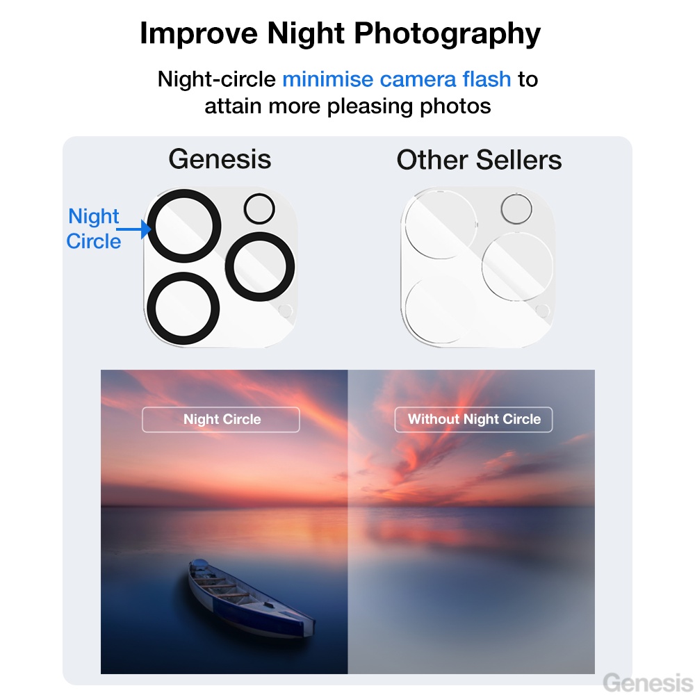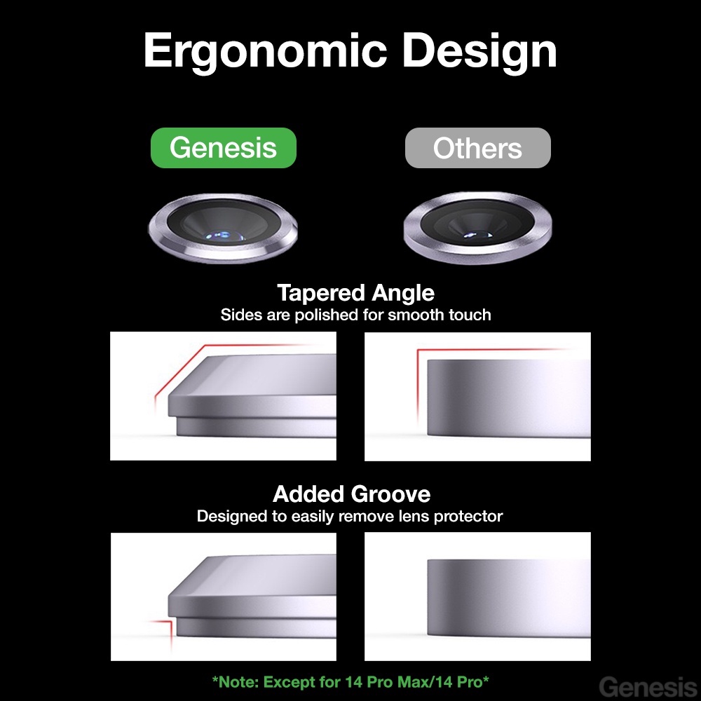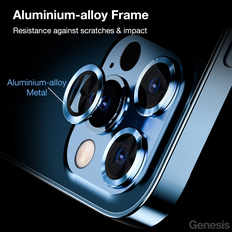 Genesis iPhone 14 Pro Max/ 13/ 12/ 11 Camera Lens Protector Plus Mini For Tempered Glass Metal Cover