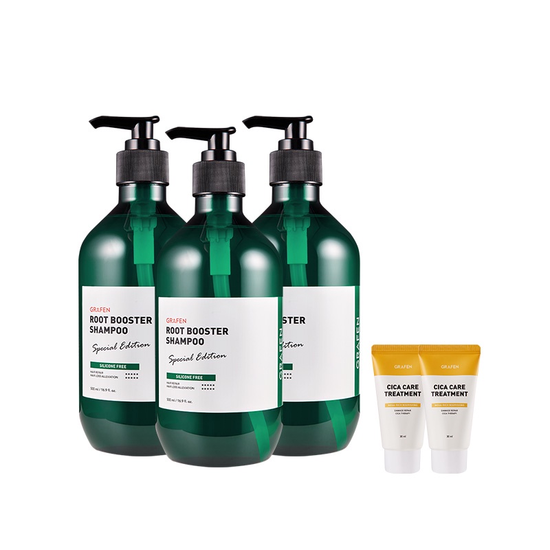 [Grafen] Root Booster Shampoo 500ml x3 + [Free Gift] Miniature Cica Care Treatment 30ml x2 [Anti-Hair Loss]