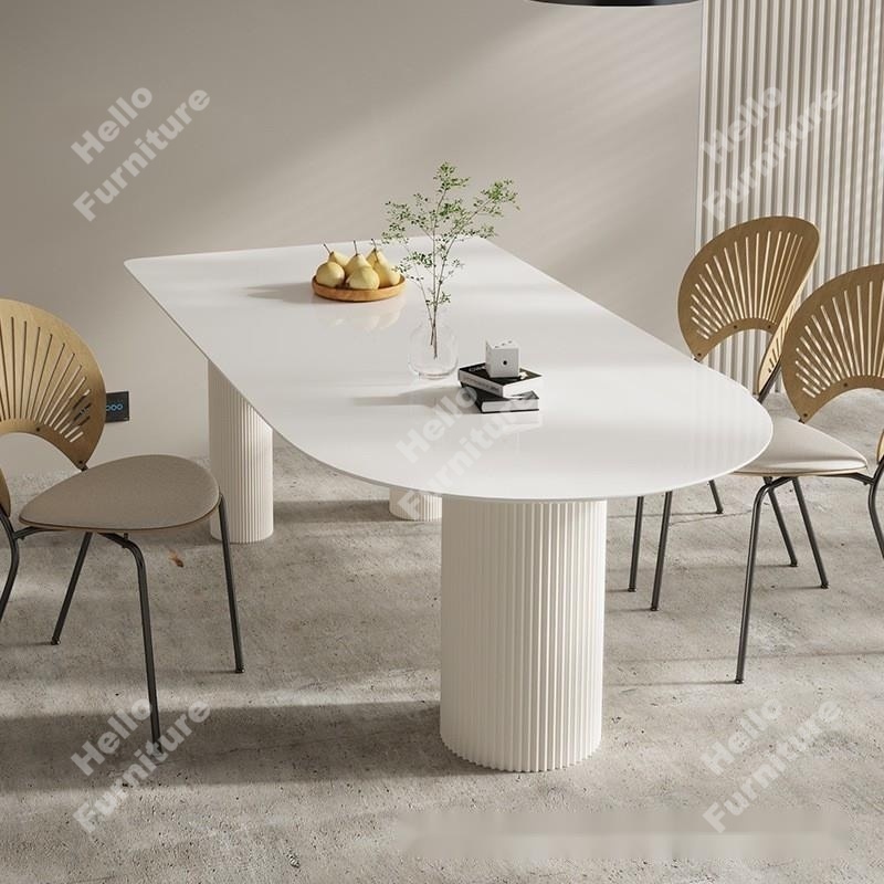 Nordic pure white rock plate dining table and chair combination modern minimalist semicircular household designer Island dining table