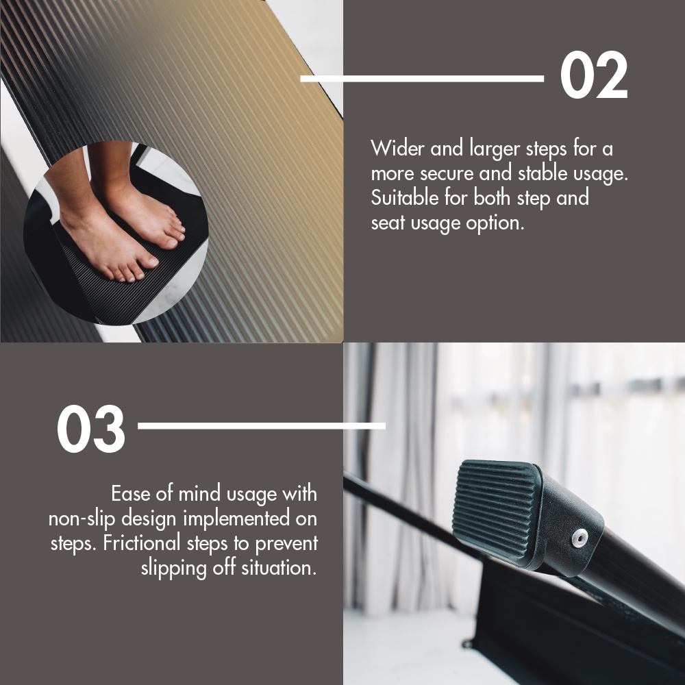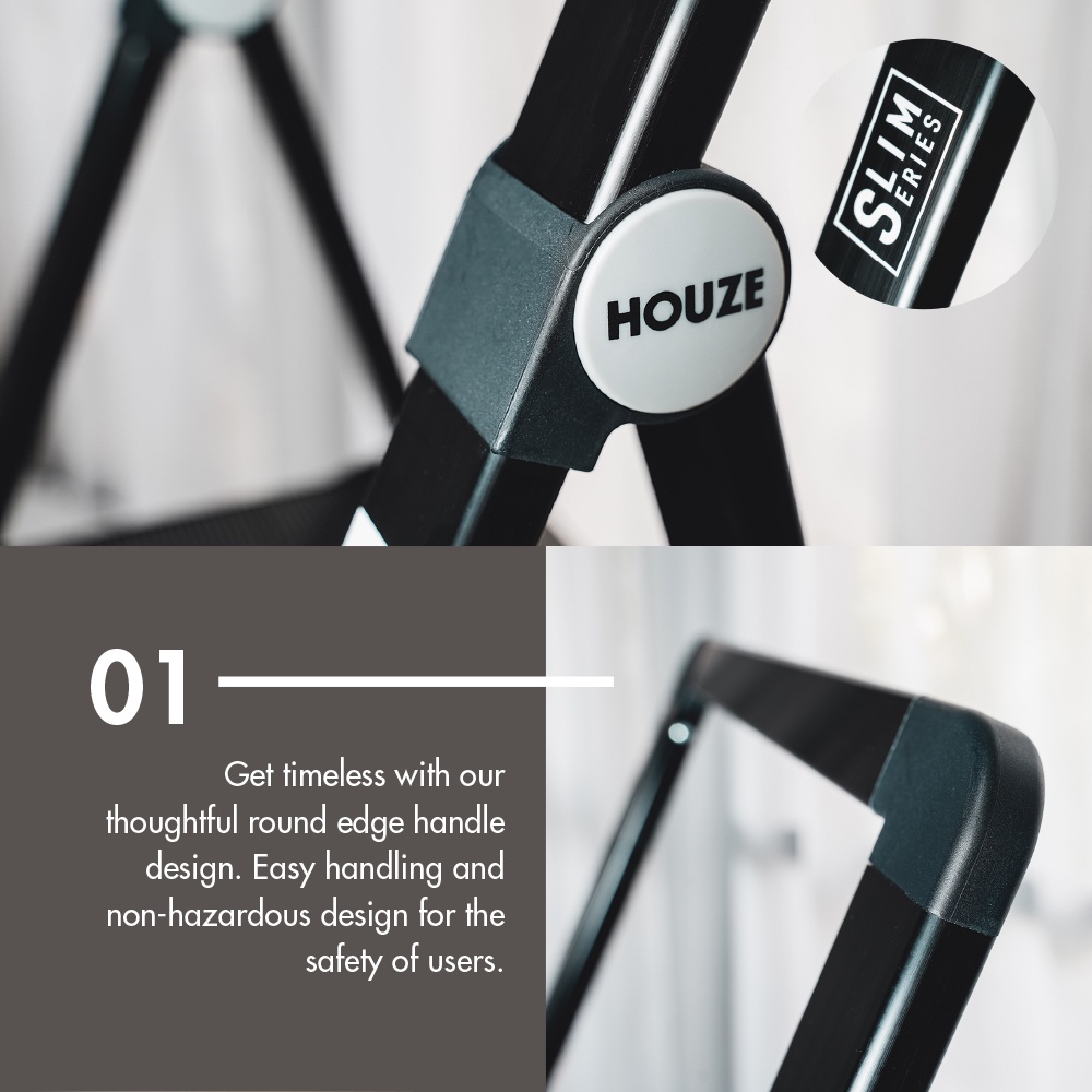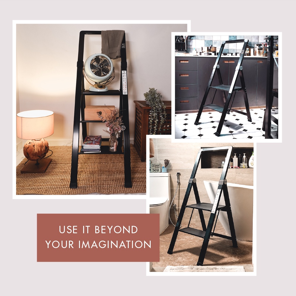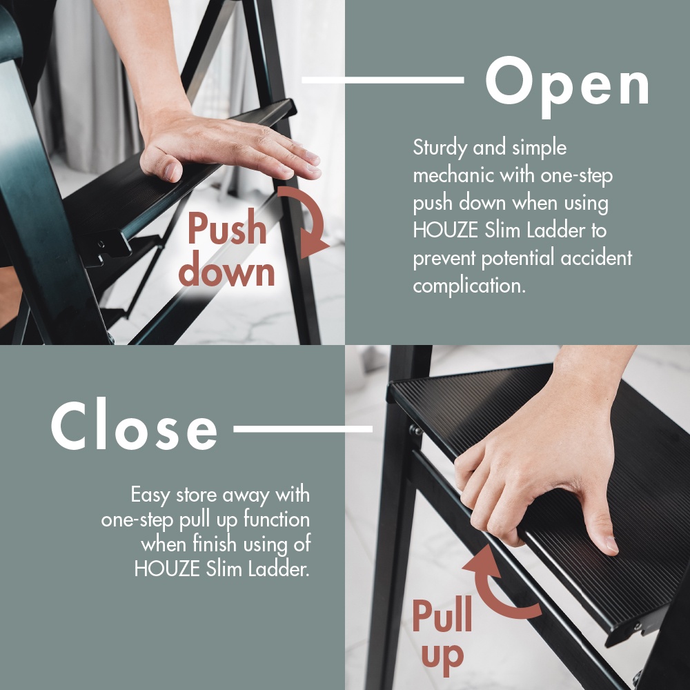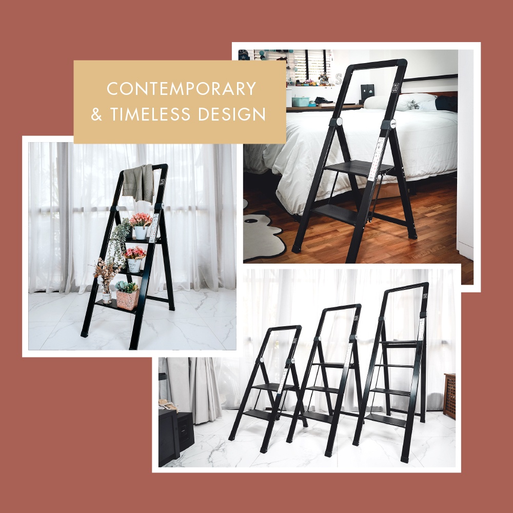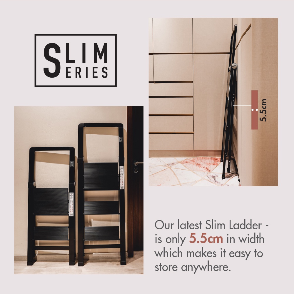 A standard step ladder is essential for the household. With space constraints, storing ladders can be troublesome. Our latest Slim Ladder - is only 5.5cm in width which makes it easy to store anywhere. Stability isn't compromised with its thin built, this ladder performance requirements and suitability of use are certified with EN14183. User-friendly design provides maximum comfortability to step on and ease of mind usage.