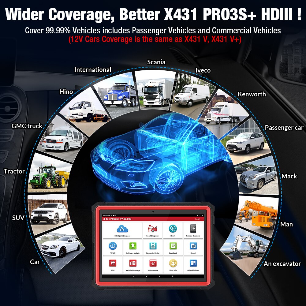 2021 New LAUNCH X431 PRO3S+ HDIII Heavy Duty Diagnostic Tool ,Support both 12V vehicles and 24V trucks(Include Gasoline and Diesel), Full System Scan Tool , 30+ Service , Bi-directional Control , Coding , Active Test ,10.1 Android 9.0 Touchscreen , 100+ passenger car brands and 160+ commercial vehicle brands
