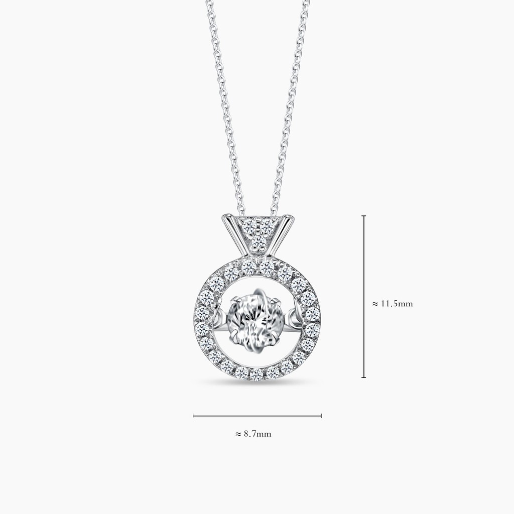 The Charmes Grace Mini Ring Diamond Pendant is crafted with a centerpiece dancing diamond and a diamond encrusted halo for the ultimate brilliance. A perfect gift to represent your unique love story and as a token of love, this pendant will level up her outfit. Make her heart flutter with the Charmes Grace Mini Ring Diamond Pendant.
