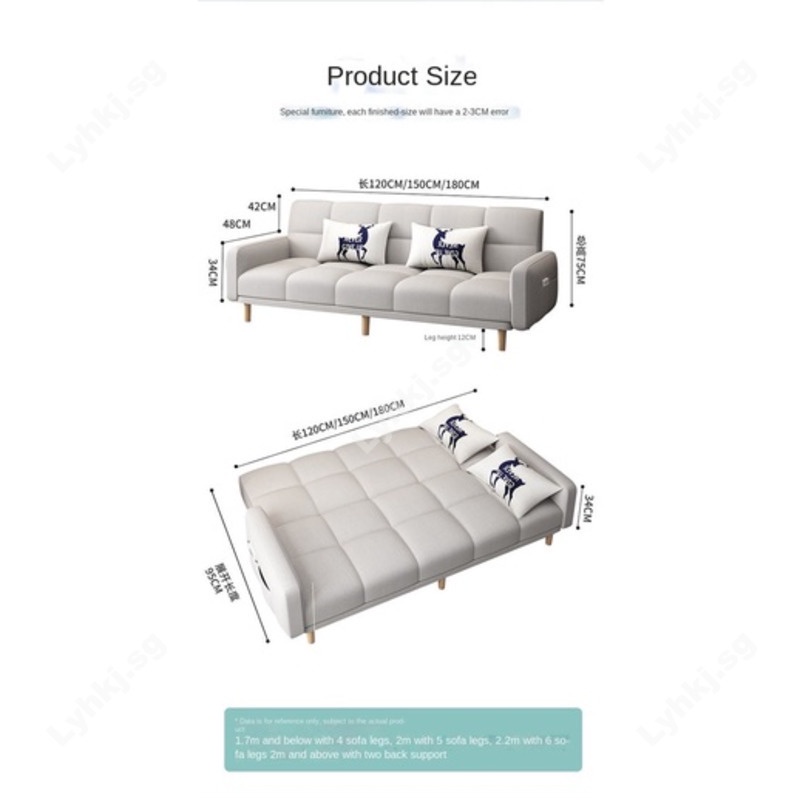 Sofa beds of 2 meters and 2.2 meters will have a support frame, and the sofa bed of 1.4/1.7 meters will not have a support frame