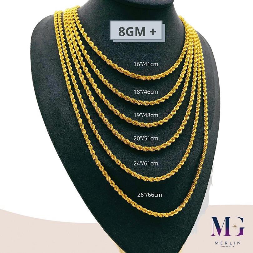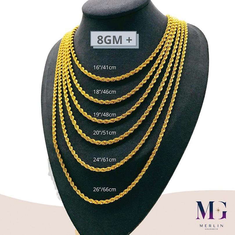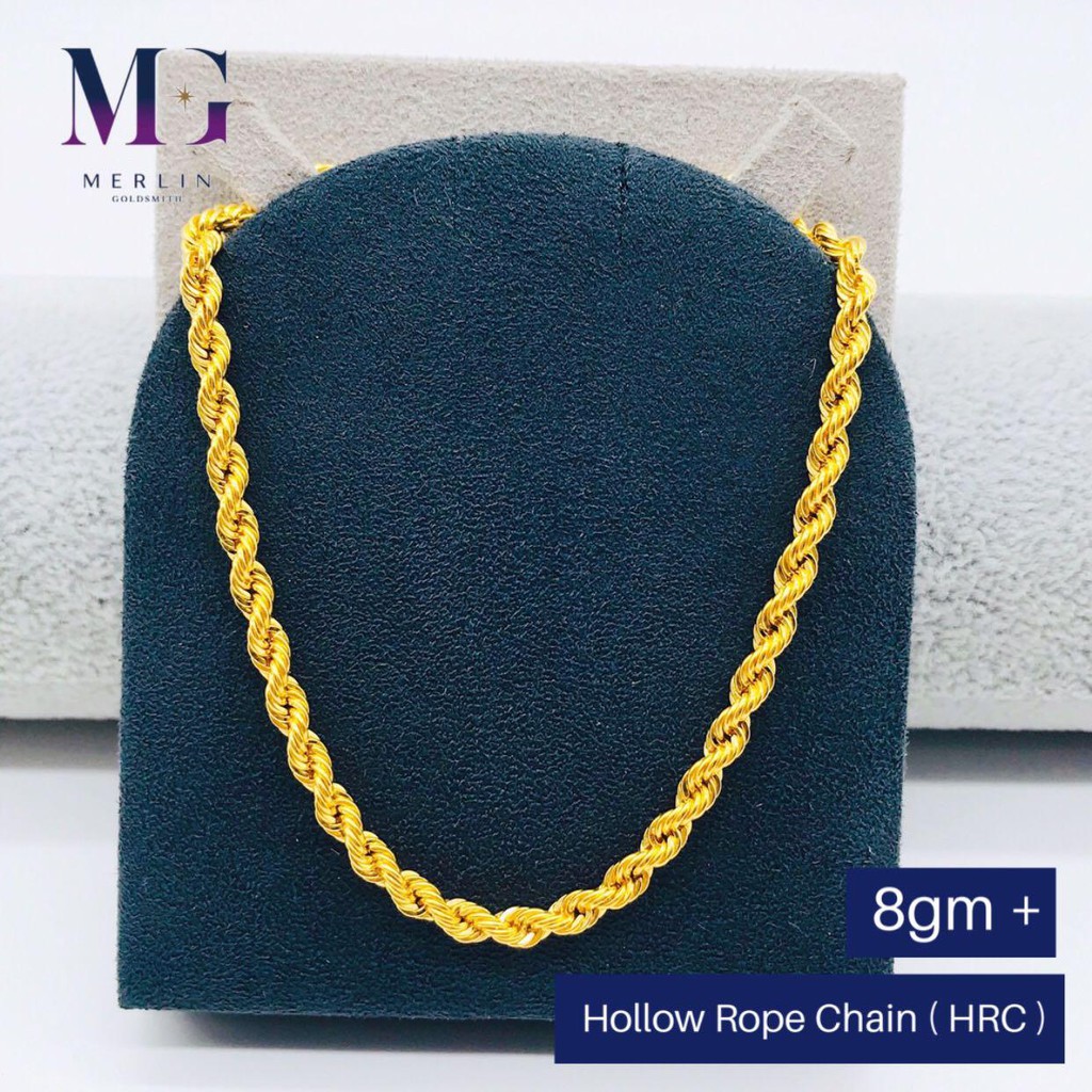 Merlin Goldsmith 916 Gold Hollow Rope Chain (HRC-8gm+) 16” / 18” / 19”/ 24”/26"