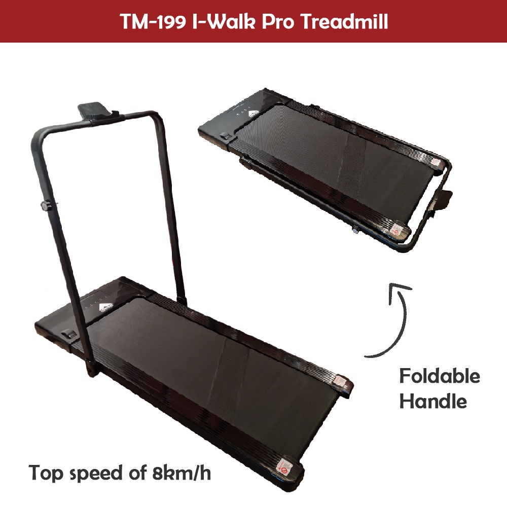 The I-Walk Pro TM-199 treadmill is the perfect piece of fitness equipment for your home. The I-Walk Pro treadmill is small and slim, so it doesn’t take up a lot of space and is great for saving space in your room. It has foldable handles for safety, a top speed of 8km/h, remote speed adjustment and a large running belt so you can exercise at the comfort of your home any time, anywhere!