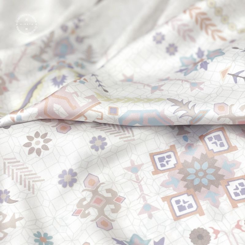 Made from special motif printed over soft, thin but not charming satin silk fabric.