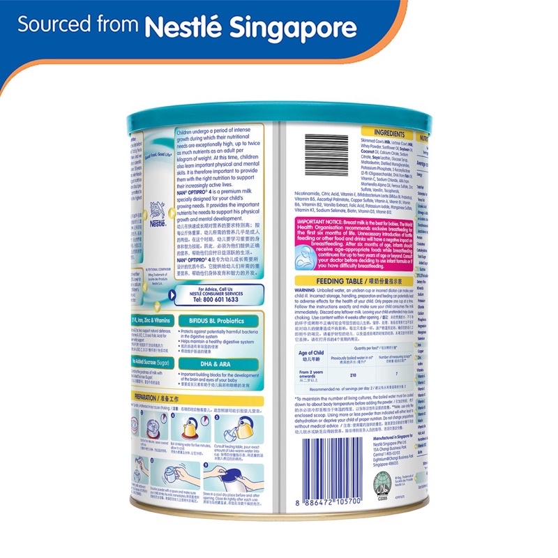 Nestle Nan Optipro 4 1.6kg (Bundle of 2 tins) Singapore Source)