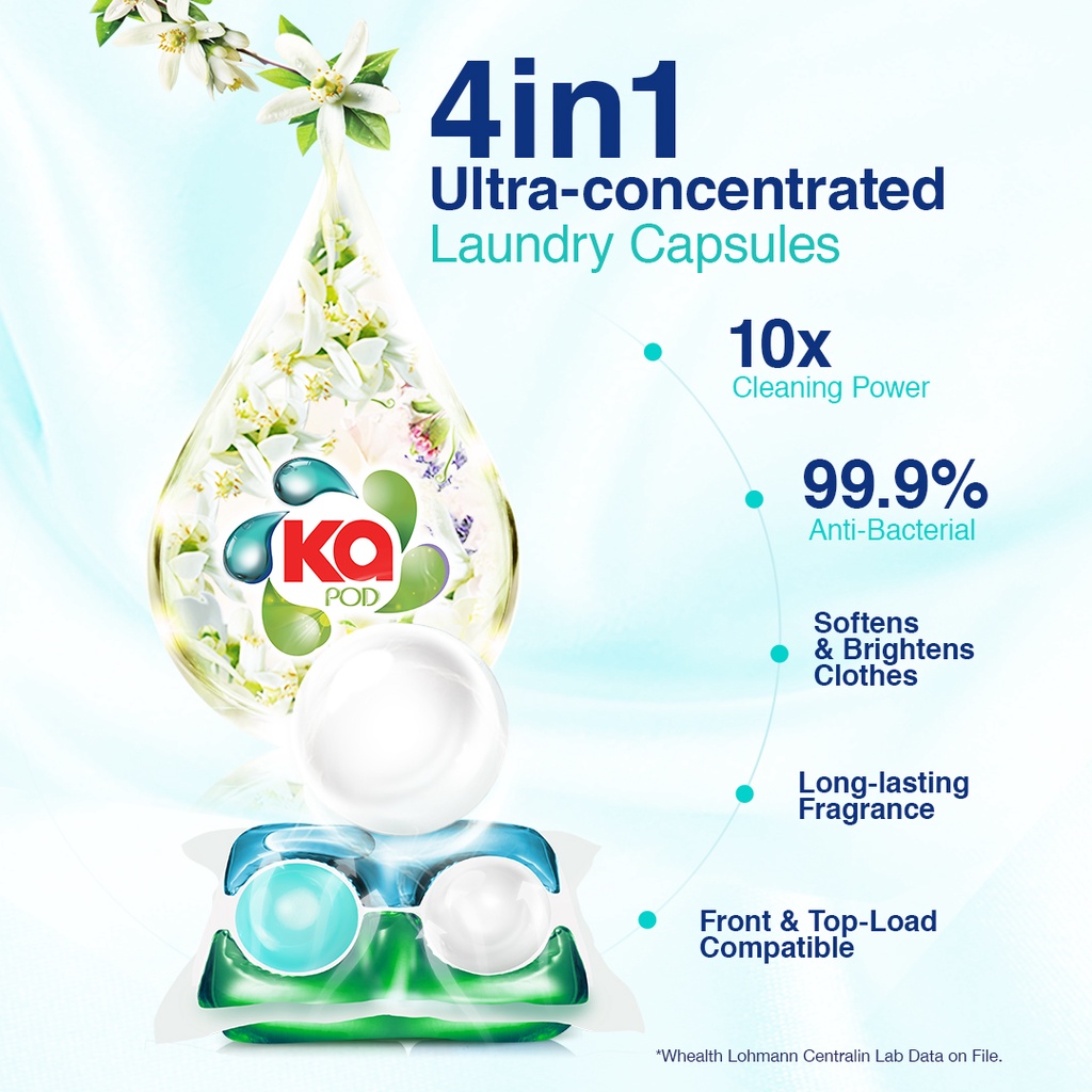 No more messy spillage and measurement of detergent with Ka 4in1 Antibacterial Laundry Capsules.