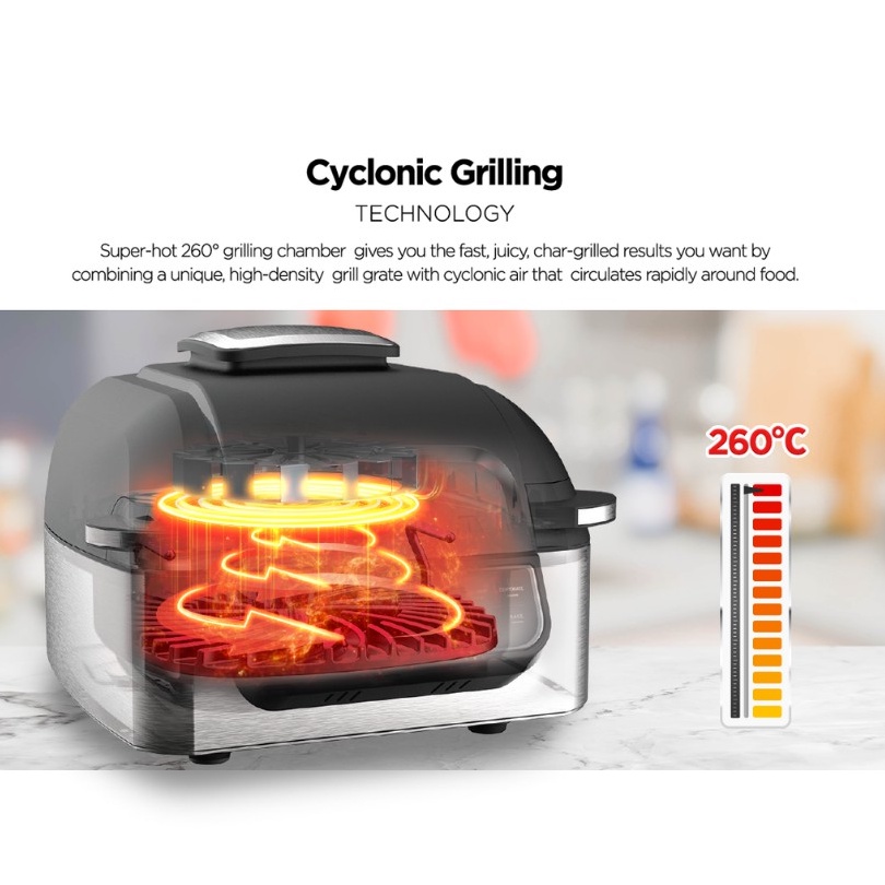 With 260°c rapid cyclonic air, the Ninja® Foodi™ Grill cooks as fast as an outdoor grill.