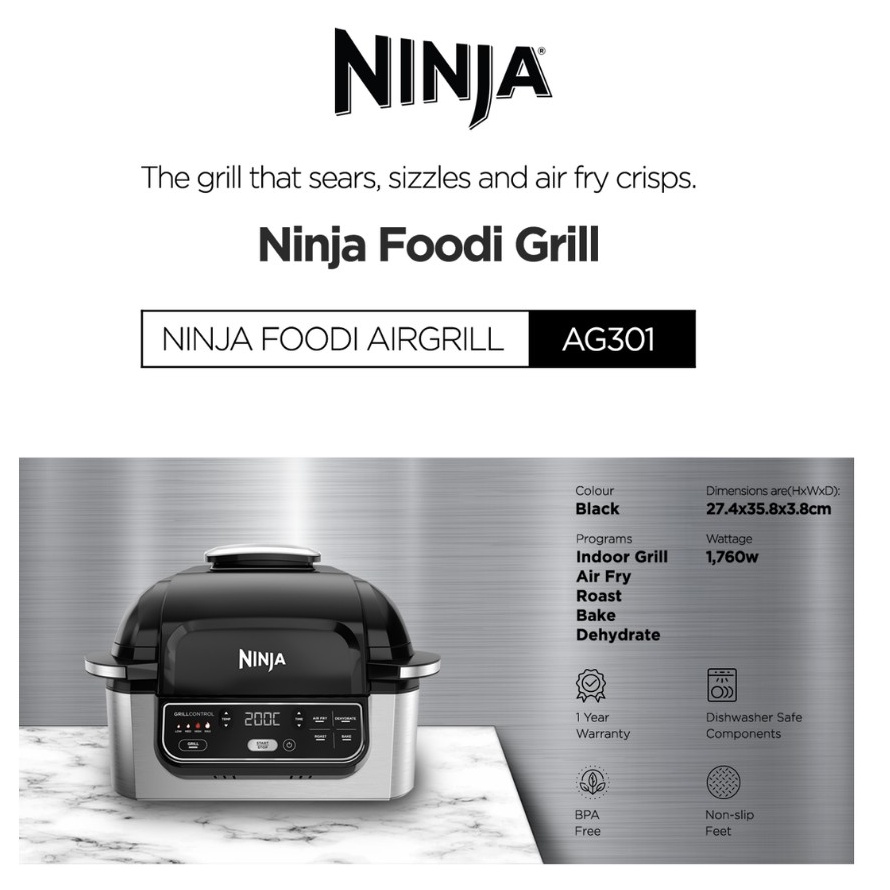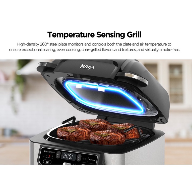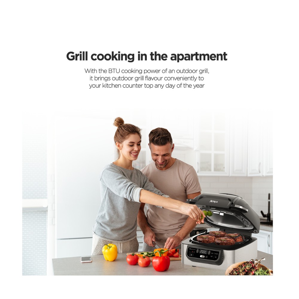Perfectly char-grilled flavours all year long, indoors. The Ninja Foodi Grill is the grill that sears, sizzles, and air fry crisps™.Get the speed and flavours of an outdoor grill plus the versatility of an air fryer—all in one easy-to-use appliance.