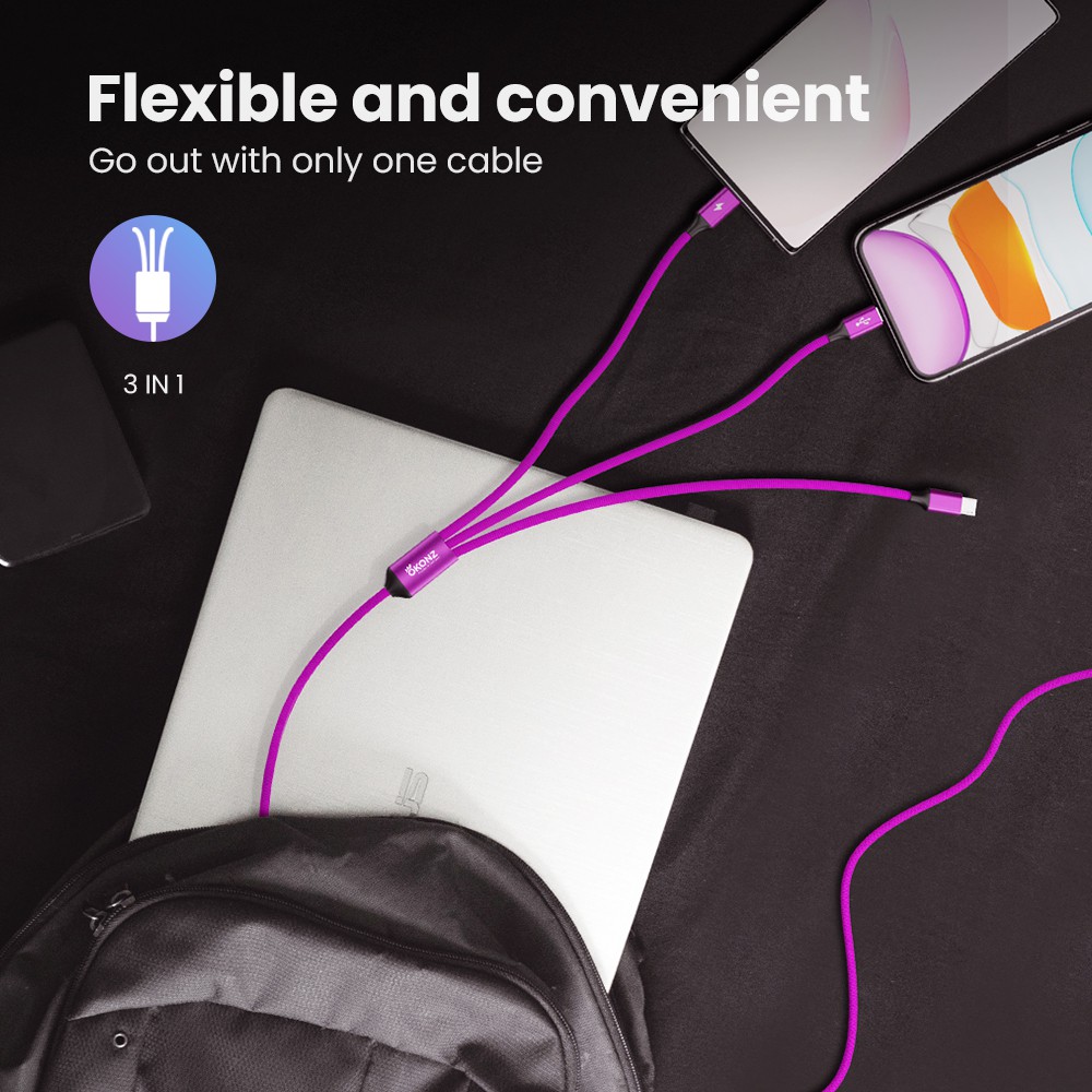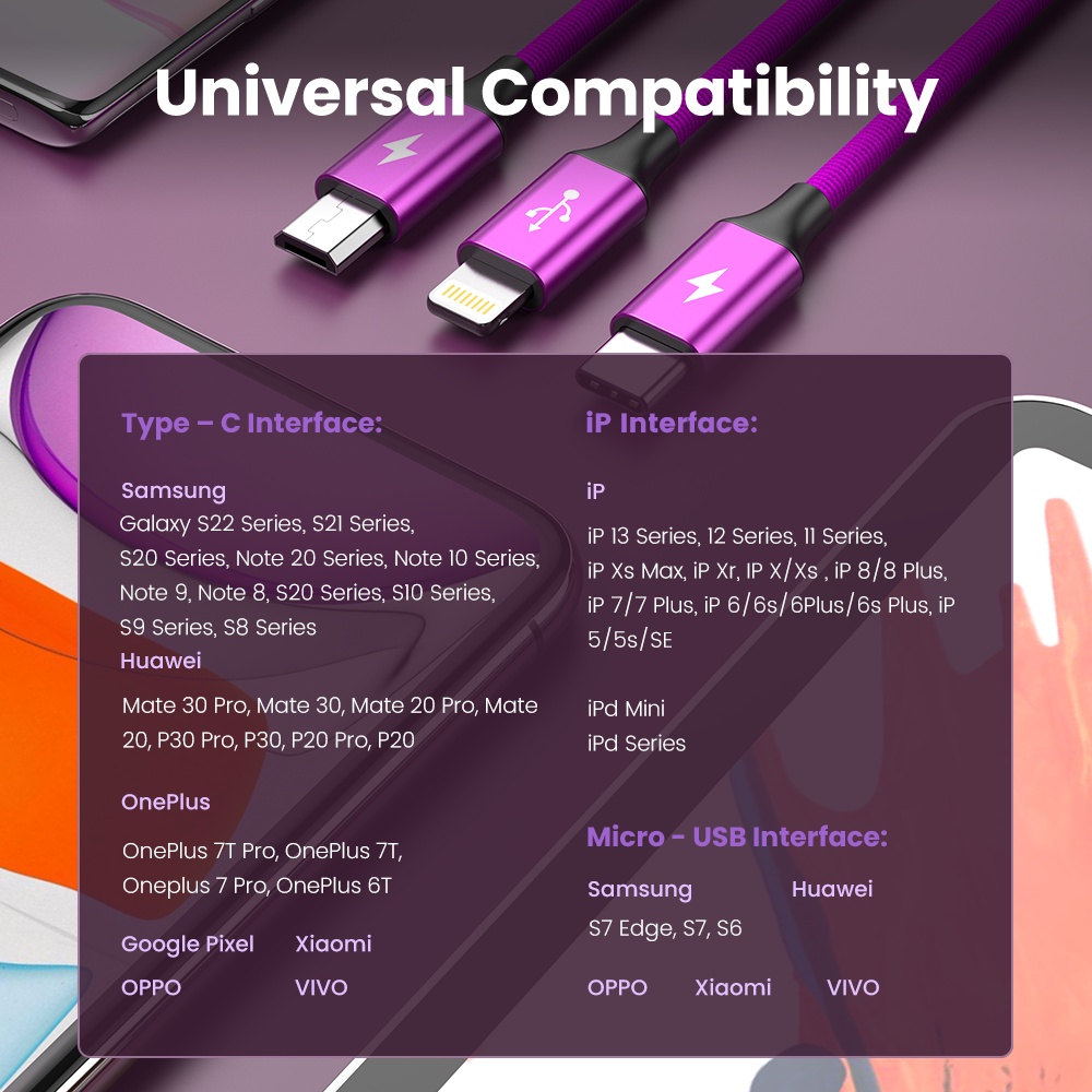 OKONZ 3 in 1 3A 5A Fast Charging Cable Type-C IP Micro-Usb Cable