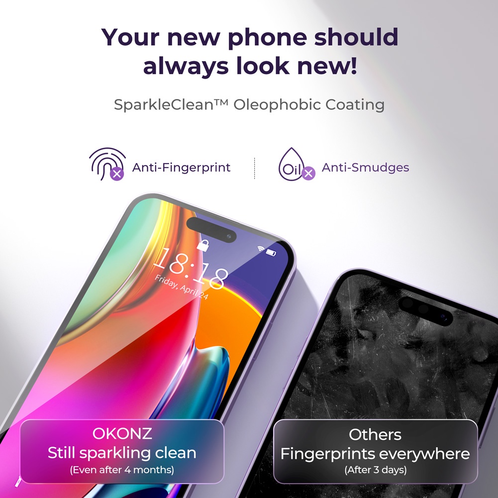 ★Okonz SparkleClean™ (Anti-Fingerprint) coating ensure ultimate smoothness and maximum resistance to Smudge,