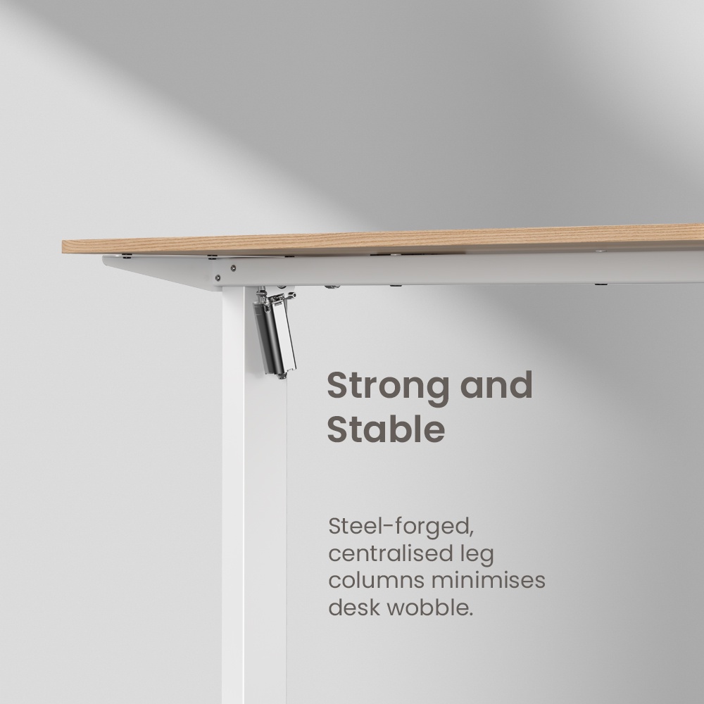 Our T-shaped frame supported by our steel-forged, centralised leg columns minimises desk wobble for a steadfast experience.