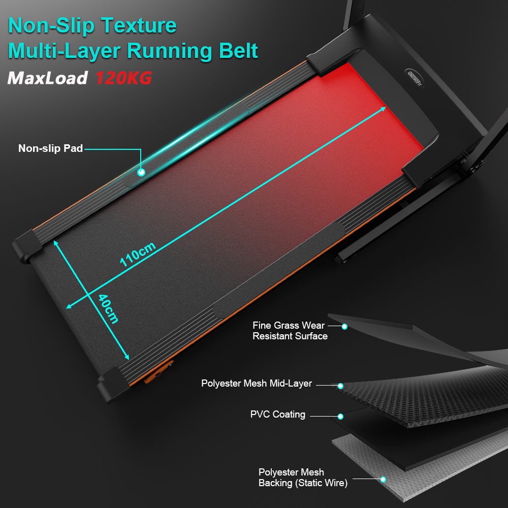 【Comfortable Running Belt】- Multiple-layer shock-absorbing Running Belt is Good For Knees,hips, ankles and feet comfortable.With a running area of 40*110CM, It more than spacious enough for runners.There are anti-skid pads on both sides to provide you with a stable and comfortable running experience.