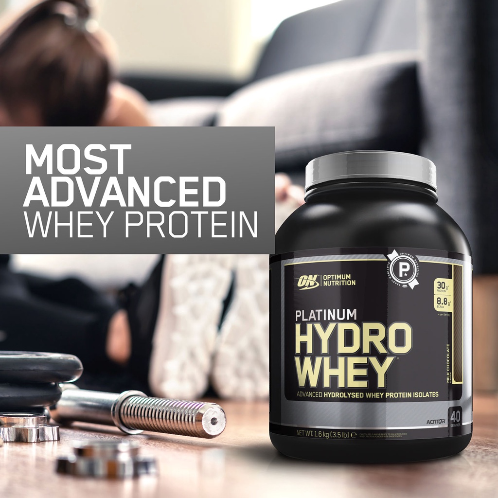 Platinum HYDROWHEY is the most advanced whey protein we’ve ever developed containing 100% Hydrolyzed Whey Protein Isolate. Hydrolyzed Whey Protein Isolate has much of the carbohydrates, fat and lactose ‘isolated’ out using sophisticated filtering technologies, and hydrolyzing breaks larger proteins down into smaller pieces, so ultra-pure whey isolate is able to get into your system rapidly for muscle recovery support. Finally, we dialed up this ultra-pure and rapidly digesting formula with added micronized Branched Chain Amino Acids (BCAAs).
