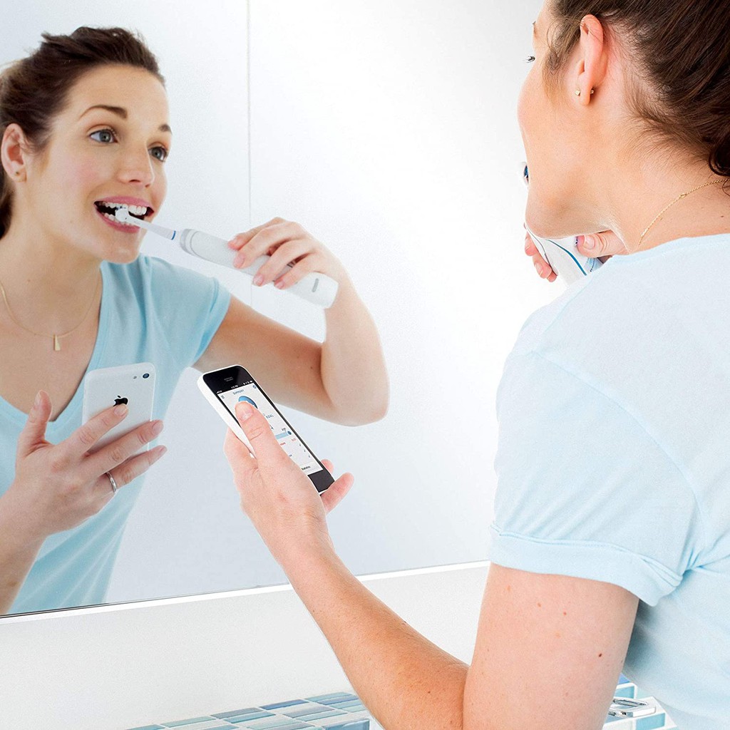 • 3D cleaning electric toothbrush head oscillates and rotates to break up and remove 100% more plaque than a regular manual toothbrush