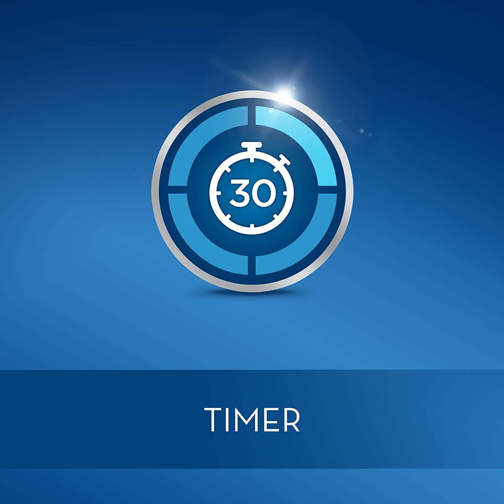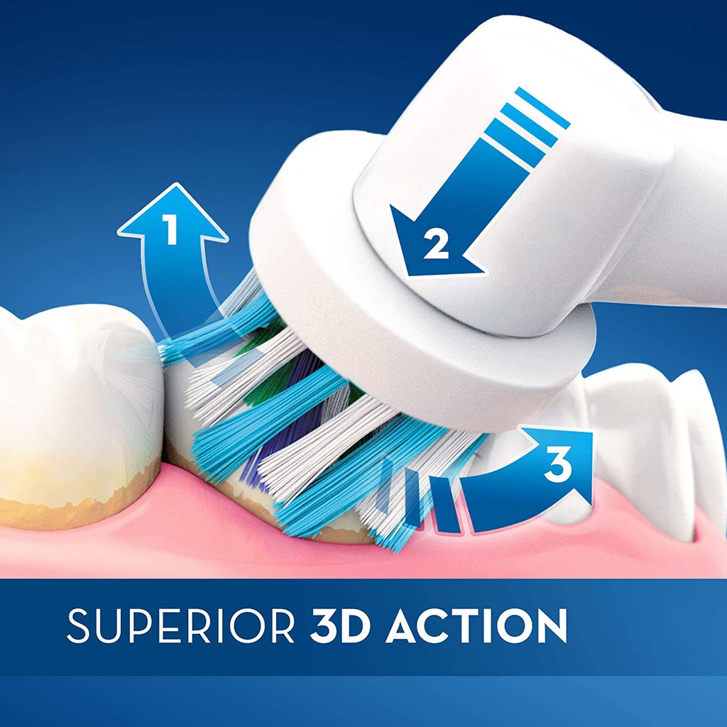 The professionally inspired design of Oral-B Precision Clean electric toothbrush head surrounds each tooth as 2D cleaning action oscillates and rotates to remove more plaque than a regular manual toothbrush. A single mode – Daily Clean – provides comprehensive everyday cleaning, and a helpful in-handle toothbrush timer alerts you when you have brushed for the dentist-recommended time of 2 minutes.