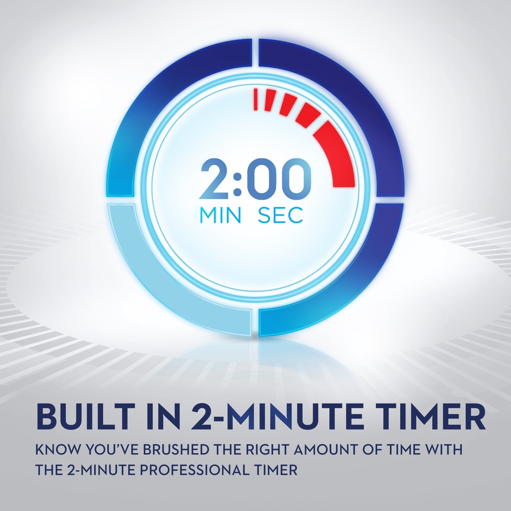 The professionally inspired design of Oral-B Precision Clean electric toothbrush head surrounds each tooth as 2D cleaning action oscillates and rotates to remove more plaque than a regular manual toothbrush. A single mode – Daily Clean – provides comprehensive everyday cleaning, and a helpful in-handle toothbrush timer alerts you when you have brushed for the dentist-recommended time of 2 minutes.