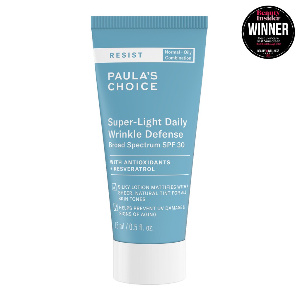 Resist Super-Light Daily Wrinkle Defense SPF 30 has a multi-purpose formula that protects skin from sun damage and fortifies it with state-of-the-art antioxidants. You’ll see a more even-looking skin tone from first use, and with daily use you’ll see that skin feels and looks firmer. Skin will also begin to look younger and more even-toned. This unbelievably light and silky moisturizer leaves a soft matte finish that perfectly preps skin for makeup, no primer needed.