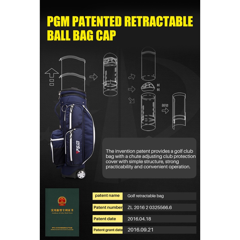 PGM multifunction retractable waterproof golf bag with wheels thermostat bag can hold a full set of golf clubs